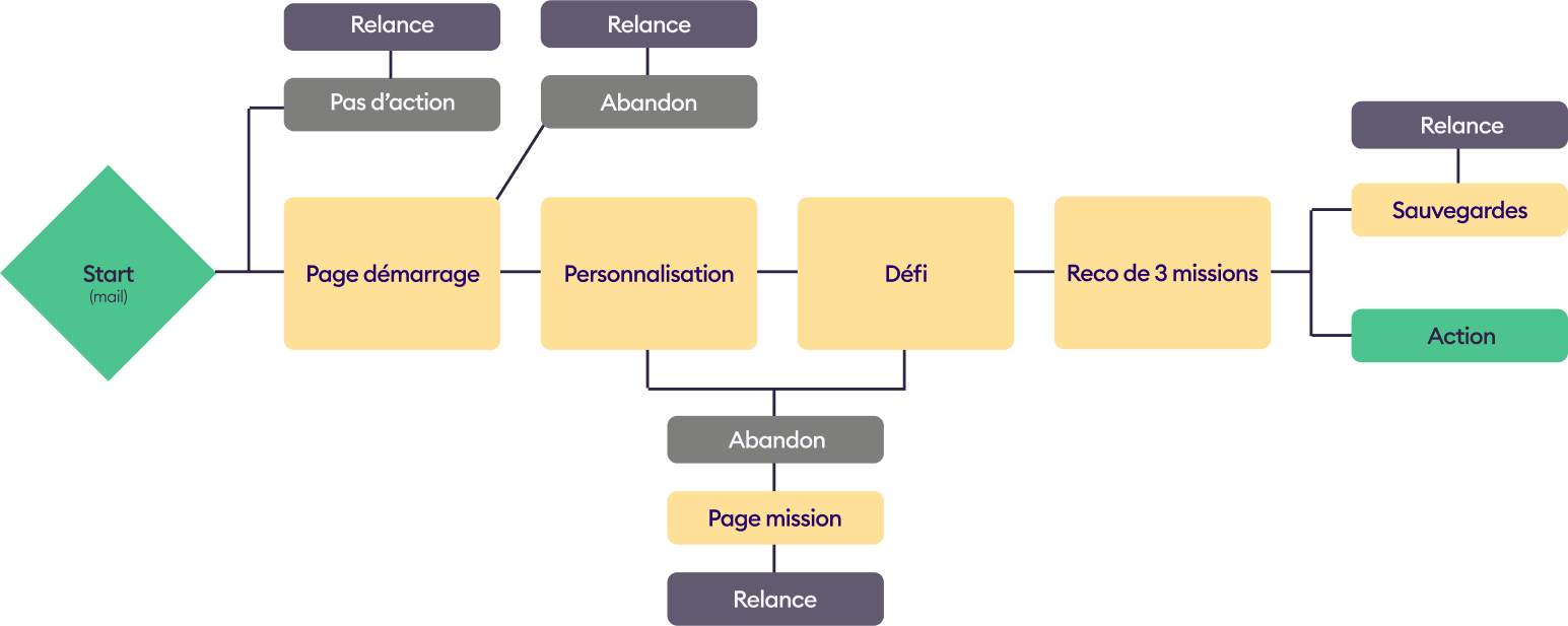 Analyser les parcours utilisateurs afin de voir comment sont amenés les missions. Comment et à quelle moment sont actionnés les leviers d’engagement dans le user flow.